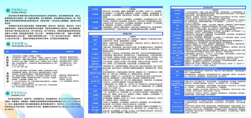 學(xué)校設(shè)置高起專、高起本、專升本、研究生(MBA)等多種學(xué)歷層次,開設(shè)管理、經(jīng)濟(jì)、教育、理工、建筑、石油、化工、醫(yī)藥、農(nóng)林等類60多個(gè)專業(yè)。